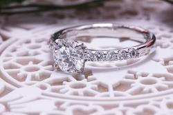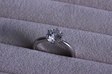 譲り受けた1.3カラットの立て爪デザインの指輪。