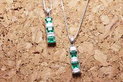 それぞれにリフォームすることも選択肢にありましたが、ダイヤモンドとエメラルドの石のサイズが近しいこともあって、組み合わせてタテに一列に並べたデザインを作らせていただくことになりました。