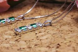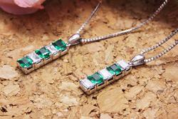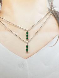 [ No.2067 ] エメラルドとダイヤモンドの一文字タイプの指輪を組み合わせてネックレスを制作