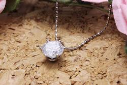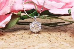 ネックレスは今はゴールドの立て爪タイプですが、プラチナにしてデザインはシンプルな定番の6本爪かキラキラした取り巻きデザインにするか悩んでおります。1カラットの大きさがあっても、グレードがわからず、良いものなら取り巻きタイプにしたいかな、現在はそれぐらいのふわっとした気持ちです。