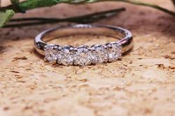 ダイヤが5石の一文字ダイヤの指輪はすんなりと、高さを抑えた普段使いのデザインに決まりました。