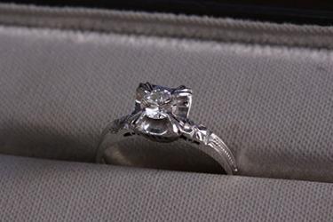 0.29カラットの箱爪デザインと呼ばれる昔ならではの指輪。