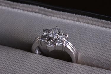 ダイヤモンドを7石使った花柄モチーフの指輪。