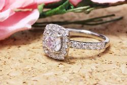 ご希望のスクエアタイプの取り巻きリングを既成のデザイン枠を使ったセミオーダーのご提案をさせていただきました。