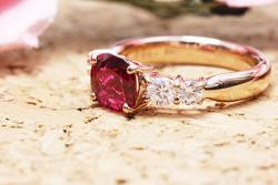 既成の枠には対応できるサイズが決まっているのですが、幸いにもお客さまのルビーの石のサイズが意中のデザイン枠にぴったりでした。