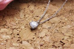 ダイヤモンドはシンプルな6本爪タイプのネックレスをプラチナで。