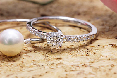 [ No.2130 ] 婚約指輪と失くした真珠のイヤリングの片方をそれぞれ意中のデザインにリフォーム