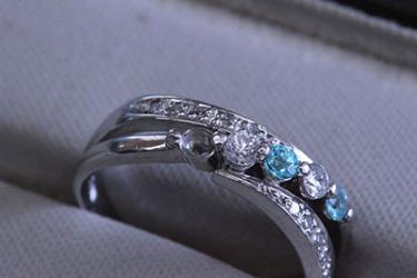 プラチナダイヤ/パライバトルマリン指輪 石合わせ修理 ¥ 33,000