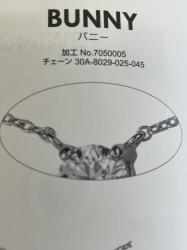 また、トップとチェーンを繋ぐバチカンは、うさぎのようにタテにつける「バニータイプ」でお作りさせていただきました。