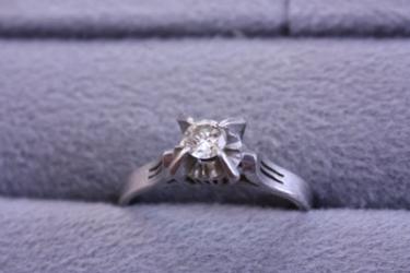 ダイヤが決して大きいものでなくてもまわりを少し取り巻いたこのデザインはダイヤを大きく見せる効果があります。