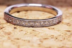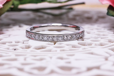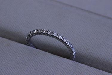エタニティーの指輪は、「爪留め」「彫留め」「フクリン留め」「レール留め」など色々な技法を使って作られ、それぞれに特徴があります。