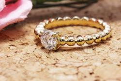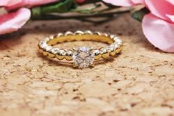 ・ 0.47ctの立て爪タイプの指輪をブランド風のゴールドのデザインリングに