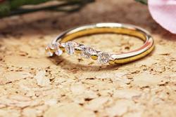 ・ ダイヤ5石(トータル0.28ct)の一文字タイプの指輪をカーブラインの同じくゴールドのデザインリングに