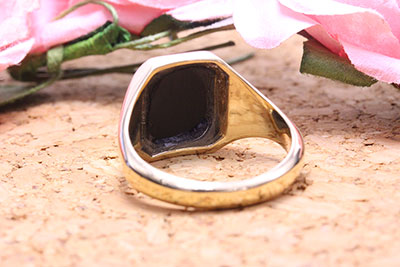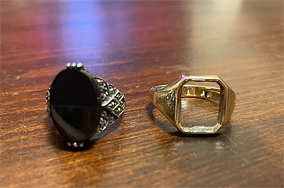 枠をお預かりさせていただき、お客様のご希望が「オニキス」「ラピスラズリ」でしたので、それぞれお見積もりをさせていただき、最終的には「オニキス」を新たに調達をしてお作りさせていただきました。