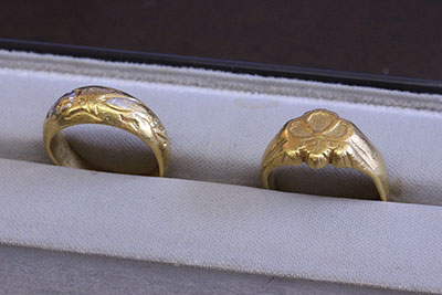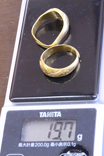 数十年前におばさんから譲り受けたという純金(K24)の指輪が2つ。
