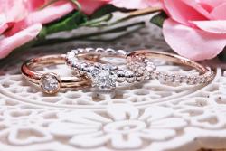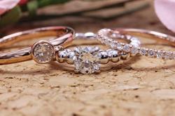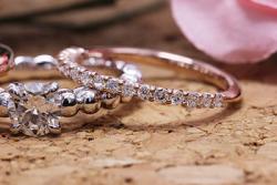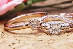 その際に色々なデザインに目移りをして、せっかくなら同じくカジュアルに使えそうな人差し指仕様の指輪も作りたいという流れになり、他のダイヤの指輪を使ってフクリンタイプのデザインをピンクゴールドでお作りさせていただきました。