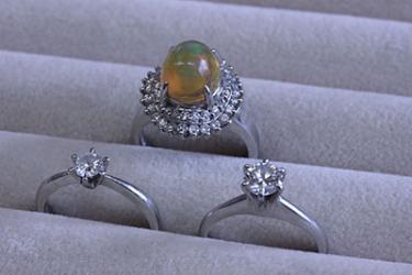 その中でオパールの指輪に使われているメレダイヤを使ったハーフエタニティーの指輪を作り、他の指輪と重ねて使うことができる旨をご提案。