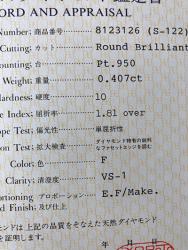 お持ちの指輪の写真と、鑑定書の写真。
