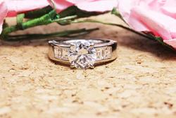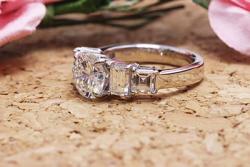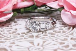 いづれもメインに1.35カラットを据えて、両サイドに角ダイヤを2pcづつ