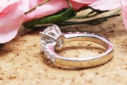 1カラット・1.5カラットいづれのダイヤも使えるデザインですが、今後のことを考えると、デザインの選択肢が多い1カラットのダイヤを置いておいて、今回は1.5カラットのダイヤでお作りさせていただきました。
