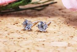 そしてラウンドカットのアクアマリンのルースはシンプルな6本爪のピアスにリフォームさせていただきました。