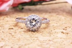 希望は1カラットのダイヤを小さなメレダイヤで取り巻いたデザイン。
