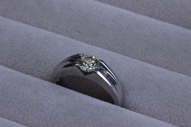 どうしても現状のようなプラチナ素材の指輪になると、イエロー色が際立ってしまうので、素材をイエローゴールドにして色のコントラストを中和させることをおススメいたしました。