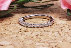また、制作途中に、重ねて使えるようなエタニティーリングを作って欲しいとのリクエストをいただき、トータルで0.4ct前後のハーフエタニティーの指輪も合わせてお作りさせていただきました。