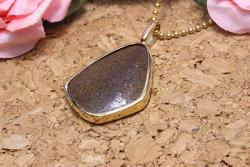 奥さんもお気に入りいただいた石で、このボルダーオパールを地金で囲ったシンプルなネックレスにリフォームさせていただきました。