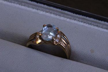 何の石かはわかりませんが、アクアマリンの周りに小さな石が4つ