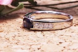 サファイアを横向けに配置した、シンプルな普段使いのデザイン。