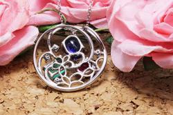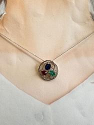 ルビー・サファイア・エメラルド フレーム枠ペンダントリフォーム ¥ 236,500(プラチナ小豆 45㎝スライドチェーン)