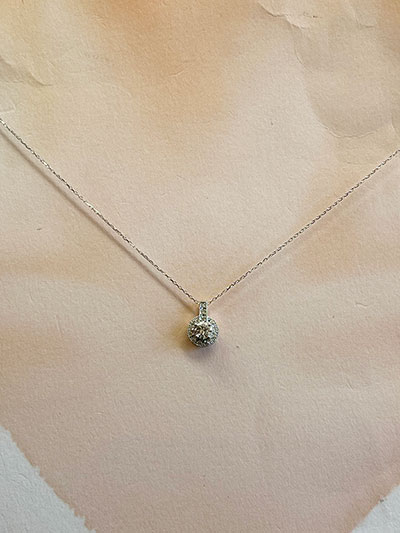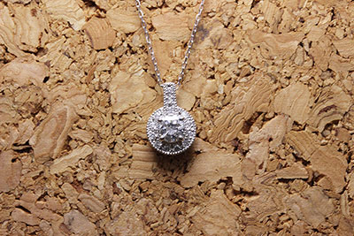 チェーンを通すバチカン部分にボリュームをつけたり、取り巻きタイプにしたりといくつかの選択肢がある中で、後者の取り巻きタイプのデザインをお選びいただきました。