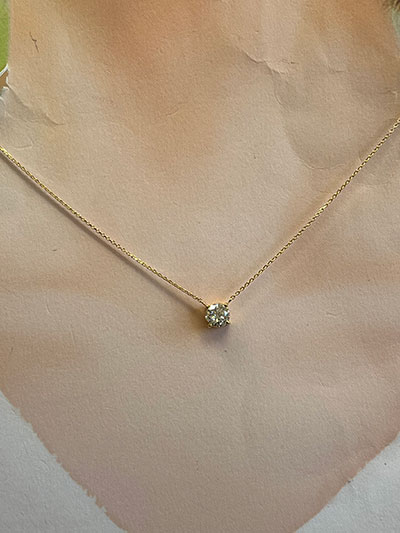 指輪のデザインに目移りもされましたが、やっぱりずっと欲しかった一粒ダイヤのネックレスにされることをご決断に。