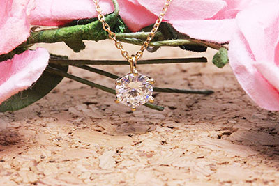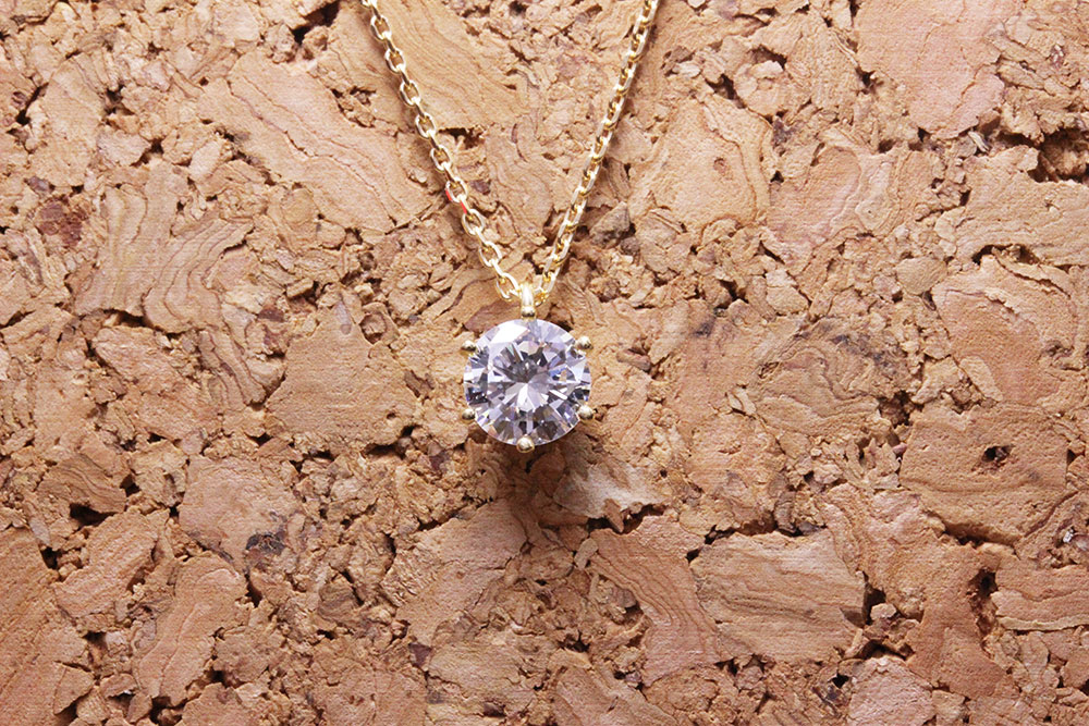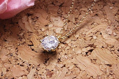 0.6カラットの義母さんからの指輪は、6本爪タイプのシンプルなネックレスをK18イエローゴールドで。
