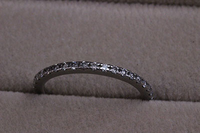 お持ちのハーフエタニティ―のダイヤモンドはプラチナの指輪の方に彫留めをさせていただき、かなり描いておられたイメージに近いものが出来上がり喜んでいただくことができました。