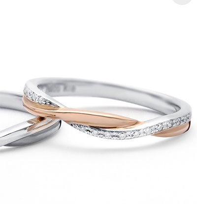 プラチナ&ピンクゴールドの素材が混じったコンビタイプのリングがご希望でもありました。