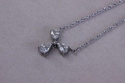 お持ちになったのはペアシェープダイヤを3石使ったネックレス。