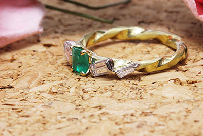 予想通り、綺麗にエメラルドが収まり、個性的でオシャレな指輪が出来上がりました。