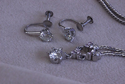 ダイヤの指輪、そしてネックレス・イヤリングなど。