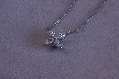 リフォームのデザインなどのサンプルを思案いただき、カタログなど色々とご覧いただく中で目に留まったのが、店頭で販売商品として陳列しているダイヤのネックレス。