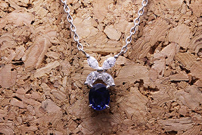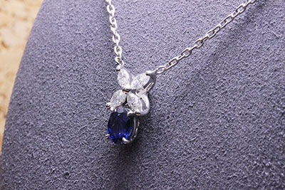 本来は、単体で使っていただくネックレスになりますが、この既製品のデザインにサファイアを組み合わせたらどうなるだろう?