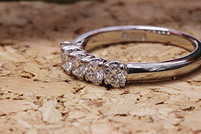 お選びいただいたデザインはダイヤ5石がそれぞれ4本爪で留められておりストレートに並んだ最も定番のデザイン。
