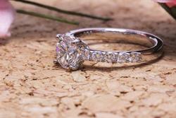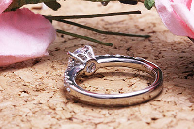 1カラットのダイヤモンドは、普段使いしやすい、両サイドにメレダイヤを配置したシンプルなデザイン。
