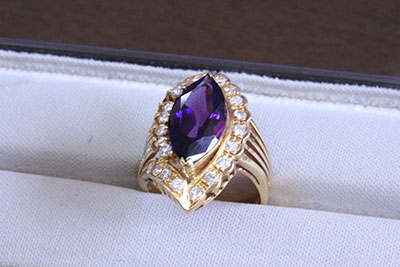 そして、もう1つはアメジストの指輪に使われているメレダイヤを使ってハーフエタニティーのリングへリフォームした事例になります。