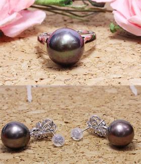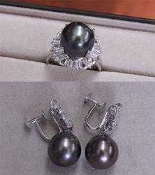 [ No.2496 ] フォーマルにも使いやすく。黒蝶真珠のピアスと指輪への上品リデザイン