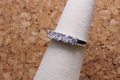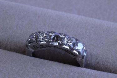 1石紛失したダイヤ5石の一文字と呼ばれる唐草模様の指輪。