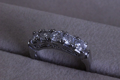 お母さまから譲り受けたダイヤ5石の一文字タイプの指輪を