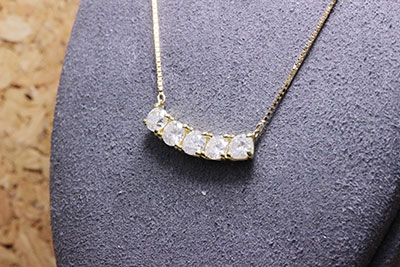 ダイヤ5石のネックレスへのリフォームは、縦に5石を並べるか?