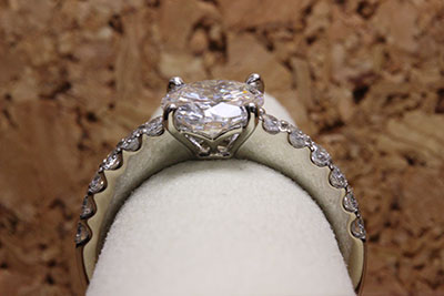 その中で、いろいろとデザインサンプルをご覧いただく中で、両サイドにメレダイヤをセッティングした細身のラインが人気のデザインを気にいっていただきリフォームさせていただくことになりました。